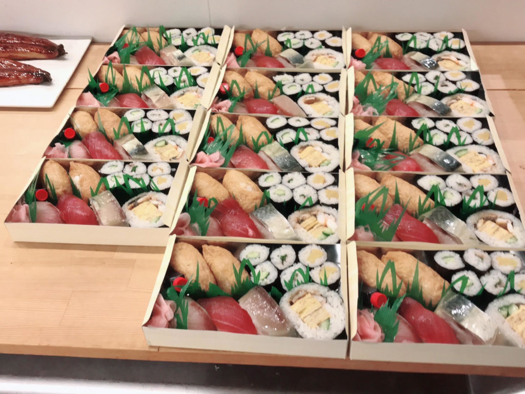 松江鮨 徳さん 松江市千鳥町 ①オードブル、握り、巻物など予算に応じて1人前1000円から4000円など。