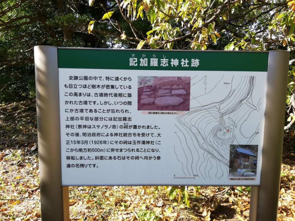 ここ、記加羅志神社(祭神:スサノオノミコト)の祠は、1926年に玉造湯神社に移設されています。